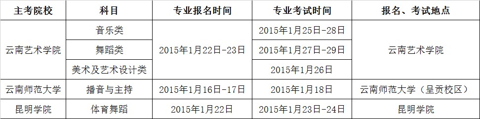 2015年云南省普通高考藝術(shù)類統(tǒng)考時(shí)間表