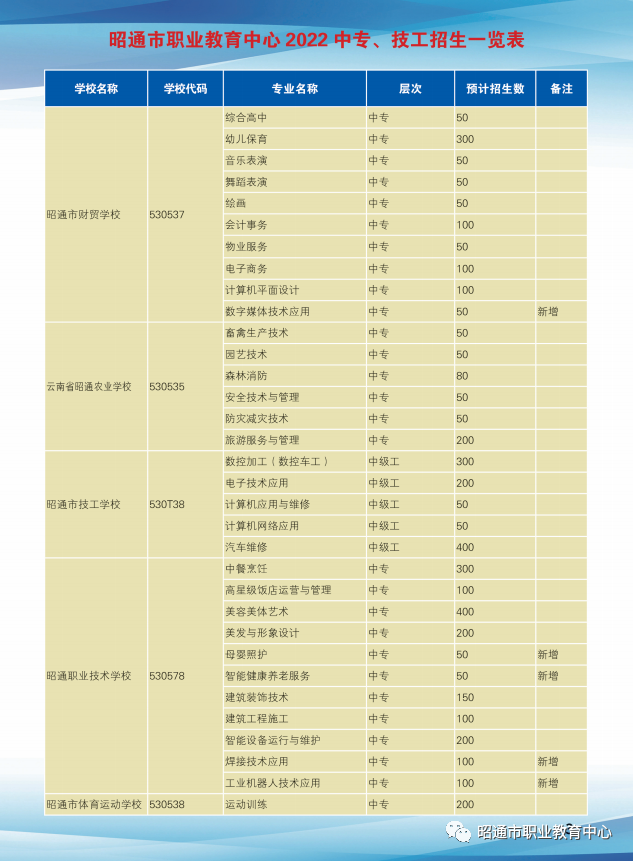 昭通市職業(yè)教育中心2022年招生簡(jiǎn)章