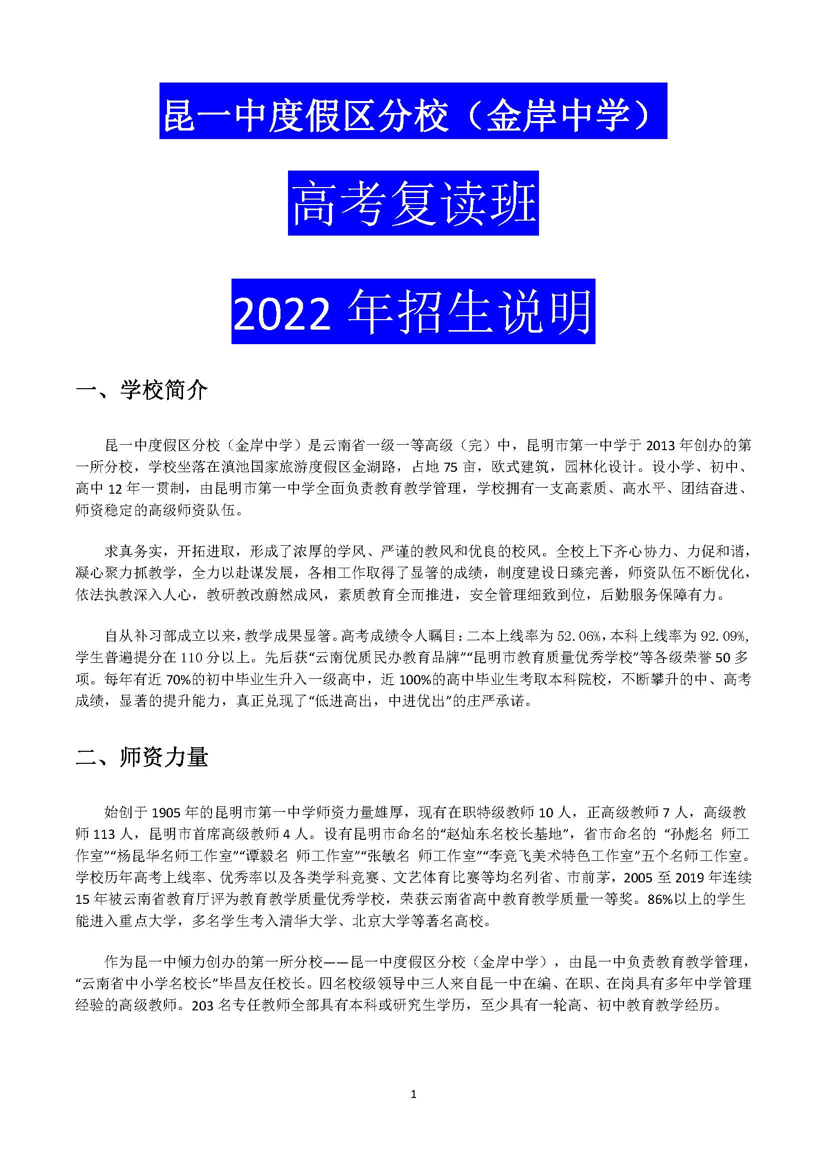 2022年昆一中度假區(qū)分校(金岸中學(xué))高考復(fù)讀班招生說明