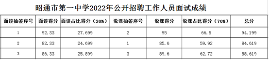 附:昭通市第一中學2022年公開招聘工作人員面試成績
