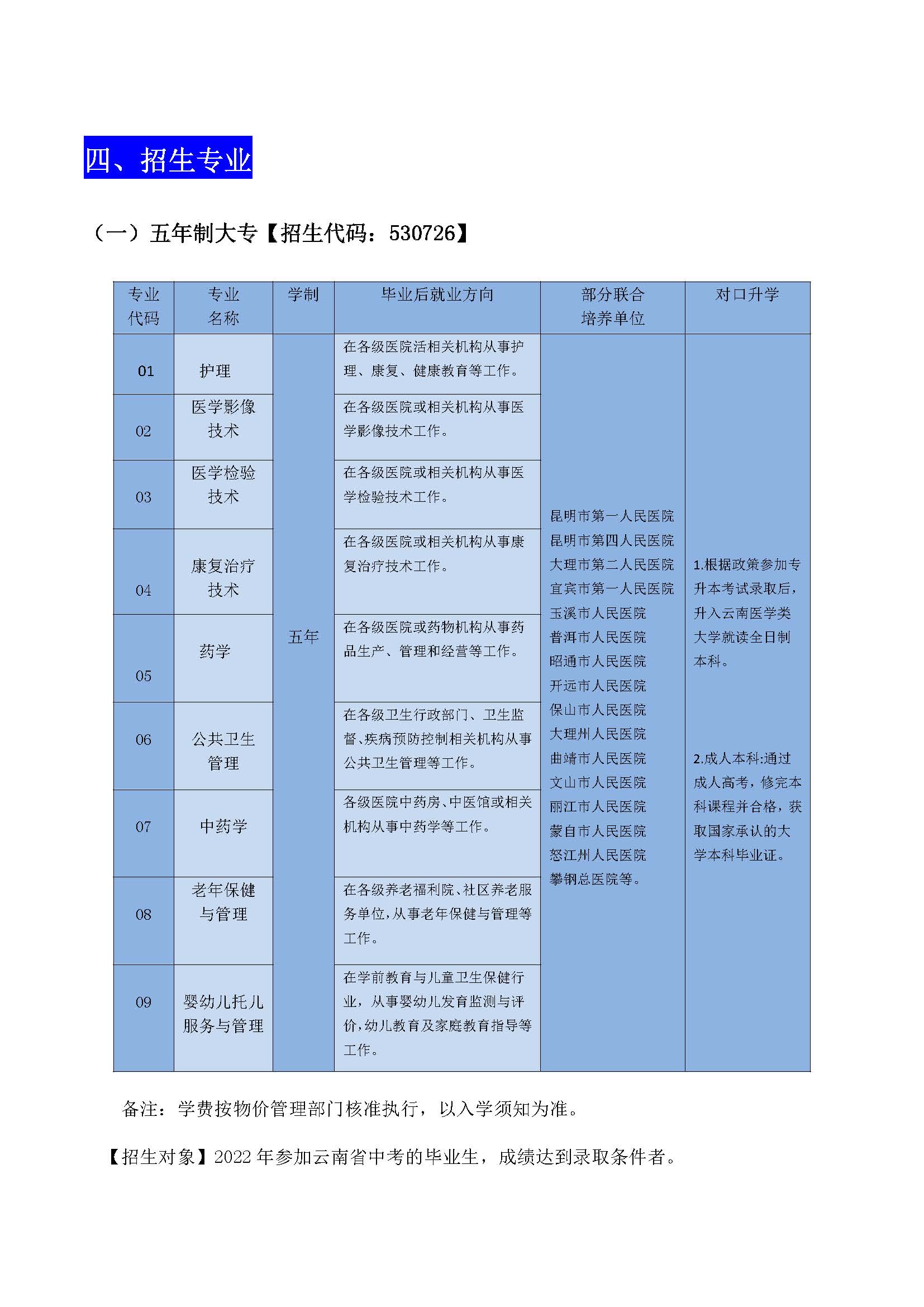 2022年云南省五年制大專招生啦