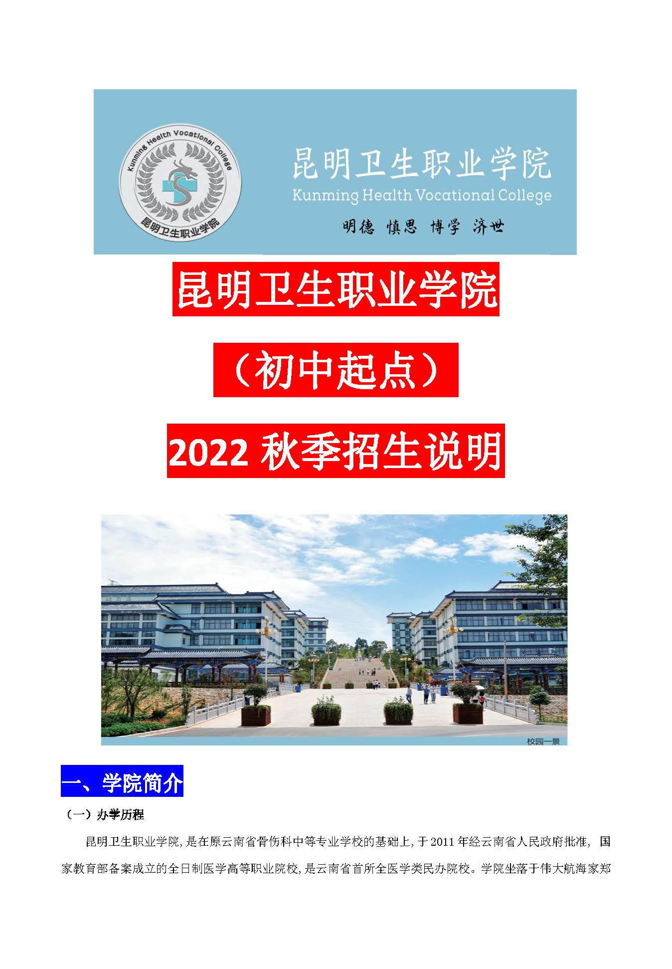 2022年昆明衛(wèi)生職業(yè)學(xué)院(初中起點(diǎn))秋季招生說(shuō)明
