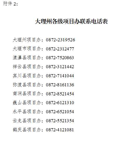 2.大理州各級項目辦聯(lián)系電話表