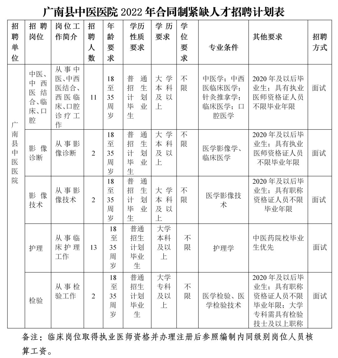 廣南縣中醫(yī)醫(yī)院2022年緊缺人才招聘簡章
