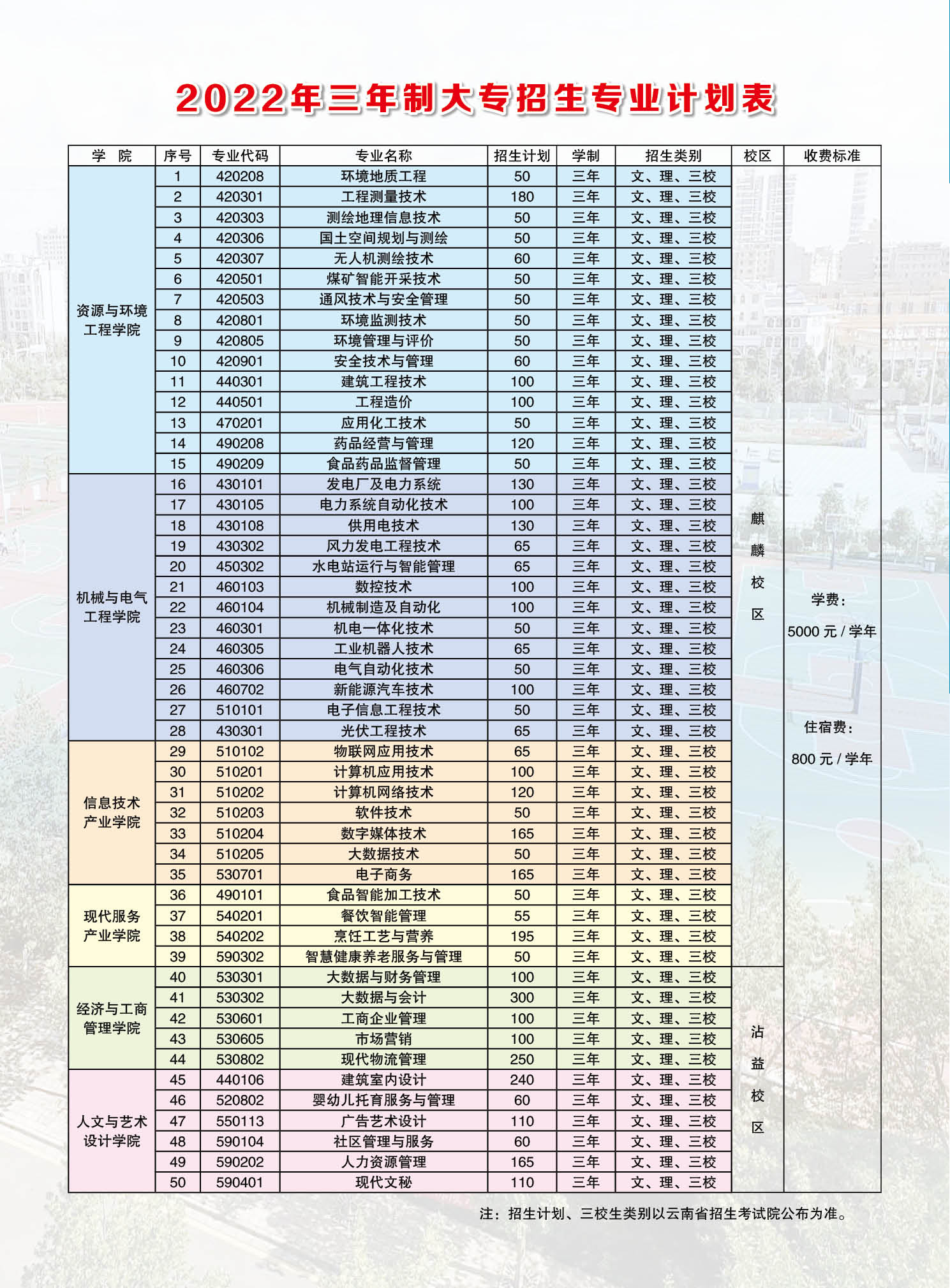 2022年云南能源職業(yè)技術(shù)學院三年制大專招生簡章