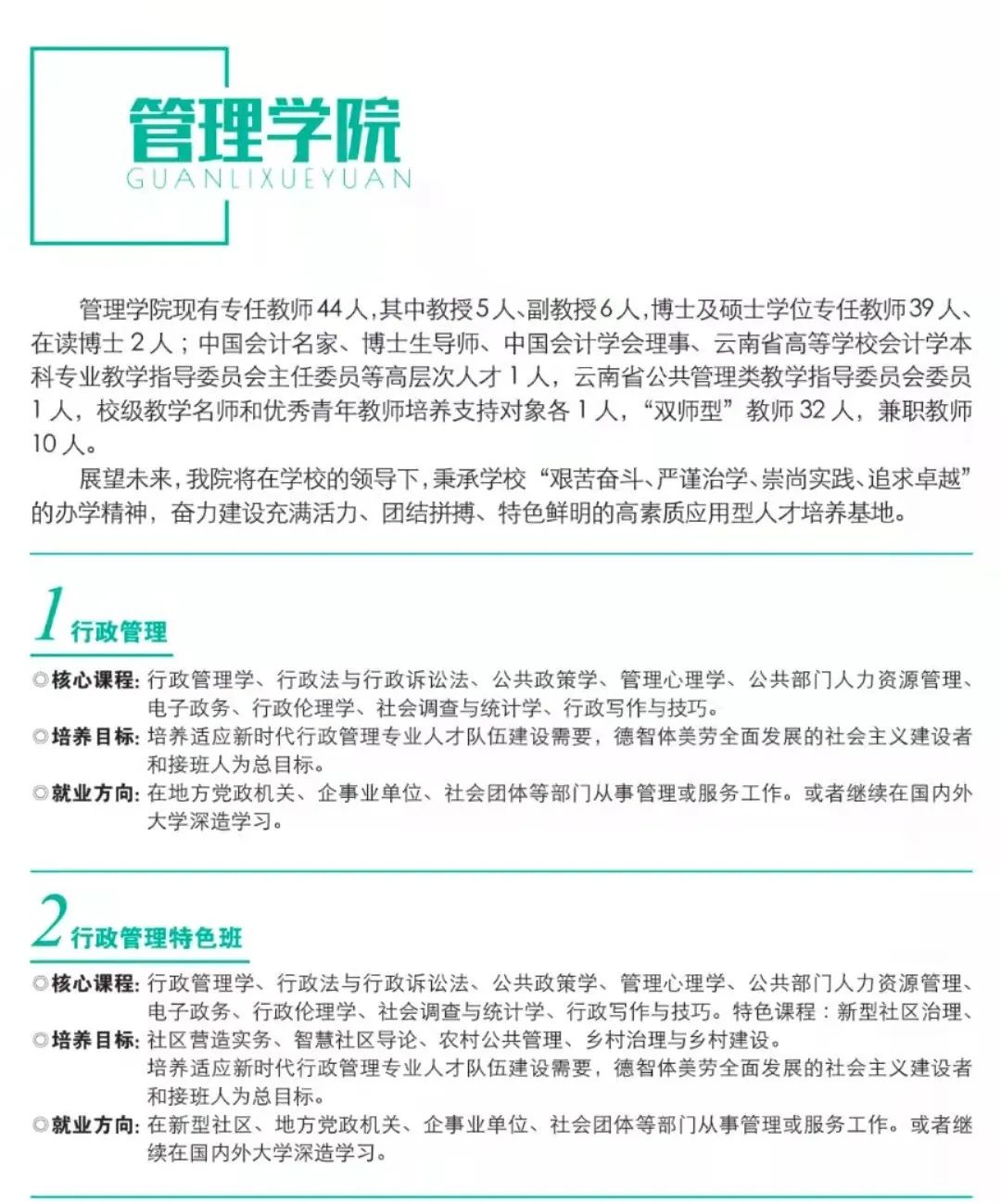 擁有“全國(guó)會(huì)計(jì)名家”“教育部工商管理教學(xué)指導(dǎo)委員會(huì)委員”“財(cái)政部會(huì)計(jì)教育專家委員會(huì)委員”“云南省工商管理教學(xué)指導(dǎo)委員會(huì)主任委員”、云南省高層次人才培養(yǎng)支持計(jì)劃“教學(xué)名師”及“青年人才”“云南省中青年學(xué)術(shù)和技術(shù)帶頭人”“省級(jí)教學(xué)名師”“烏蒙工匠”等知名專家學(xué)者。