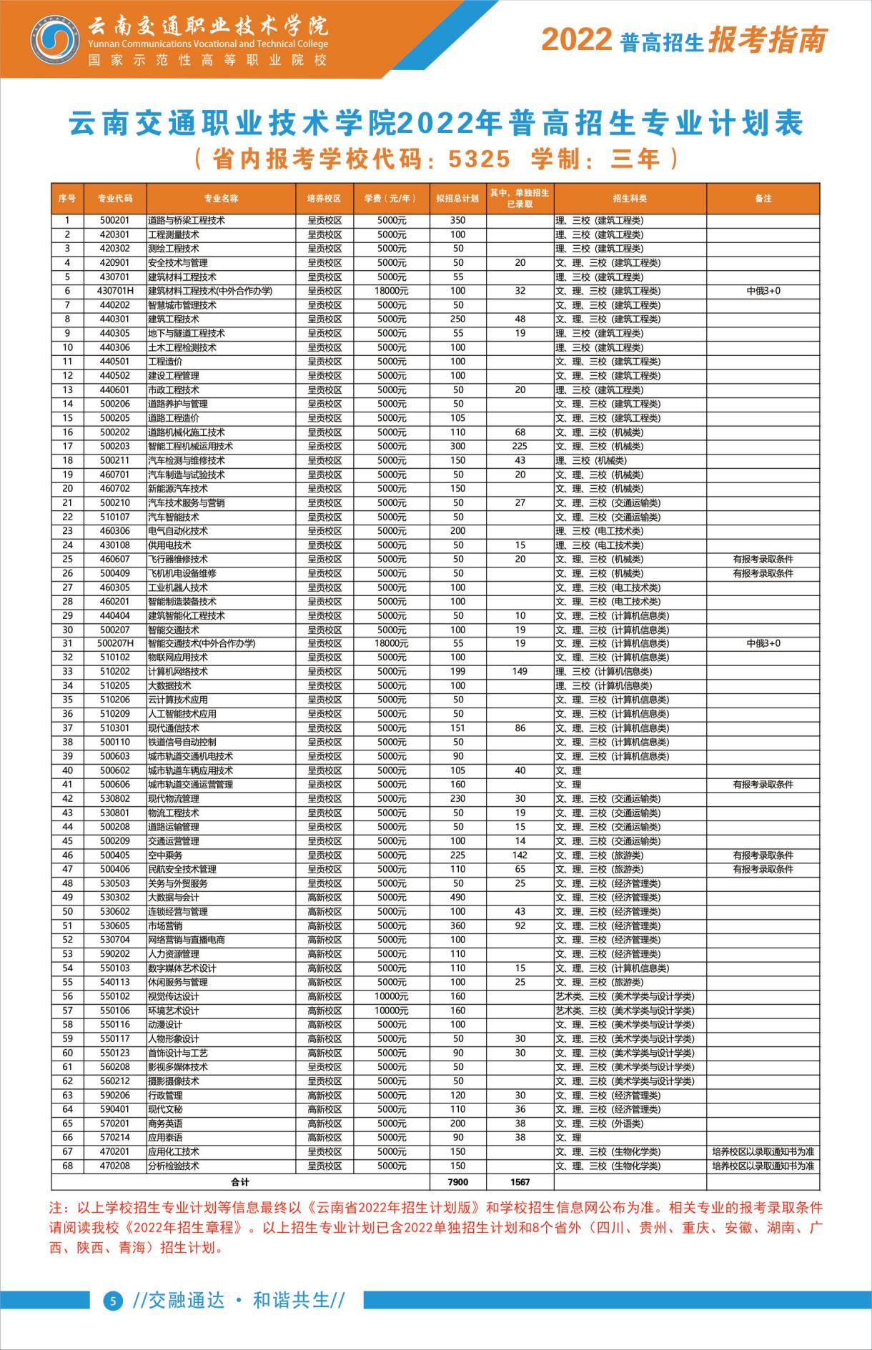 云南交通職業(yè)技術(shù)學(xué)院2022年招生簡章