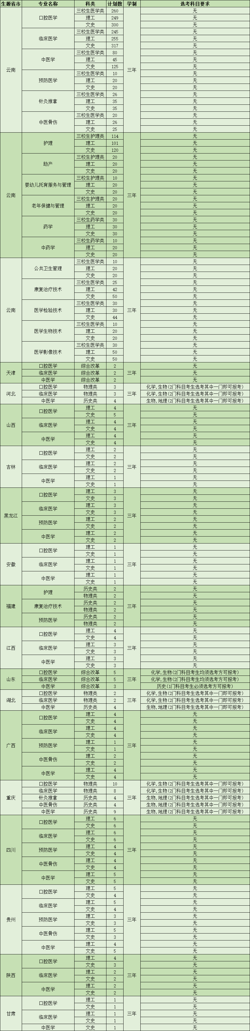 2022年昆明衛(wèi)生職業(yè)學(xué)院高職專科分省招生計(jì)劃