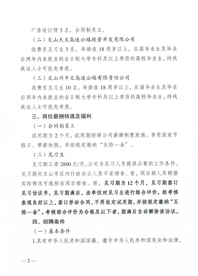 | 3 | 文山州平文高速公路有限責(zé)任公司 | 見習(xí)生 | 10 | |||||