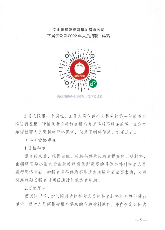 文山州建設(shè)投資集團(tuán)有限公司下屬子公司2022年人員招聘公告