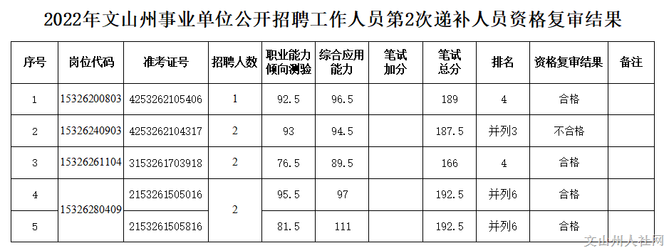2022年文山州事業(yè)單位公開招聘工作人員第2次遞補(bǔ)資格復(fù)審結(jié)果公示