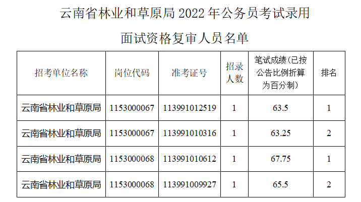 根據(jù)工作安排,現(xiàn)將云南省林業(yè)和草原局2022年公務(wù)員考試錄用面試資格復(fù)審相關(guān)事項公告如下: