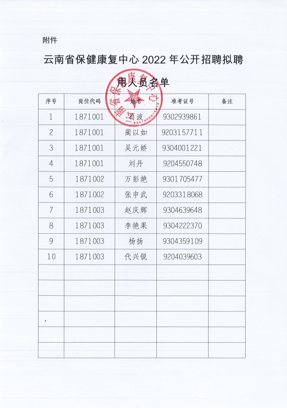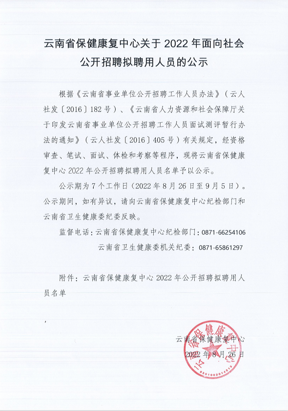 云南省保健康復(fù)中心關(guān)于2022年面向社會(huì)公開(kāi)招聘擬聘人員的公示