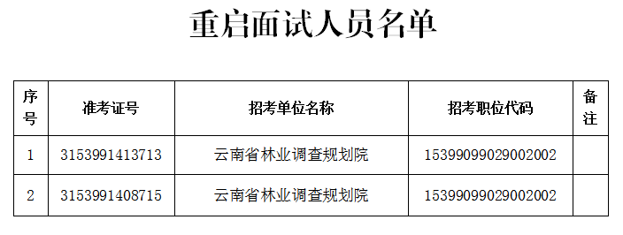 根據(jù)當(dāng)前新冠肺炎疫情防控形勢,決定重啟云南省林業(yè)和草原局2022年事業(yè)單位公開招聘工作人員15399099029002002崗位面試。現(xiàn)將有關(guān)事項公告如下: