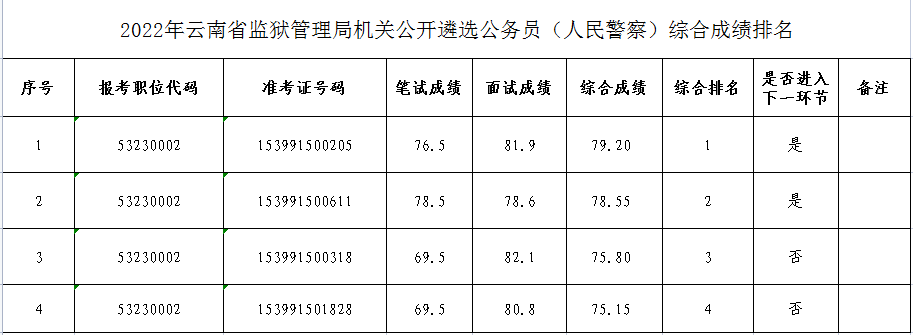 附件:2022年云南省監(jiān)獄管理局機關公開遴選公務員(人民警察)綜合成績排名
