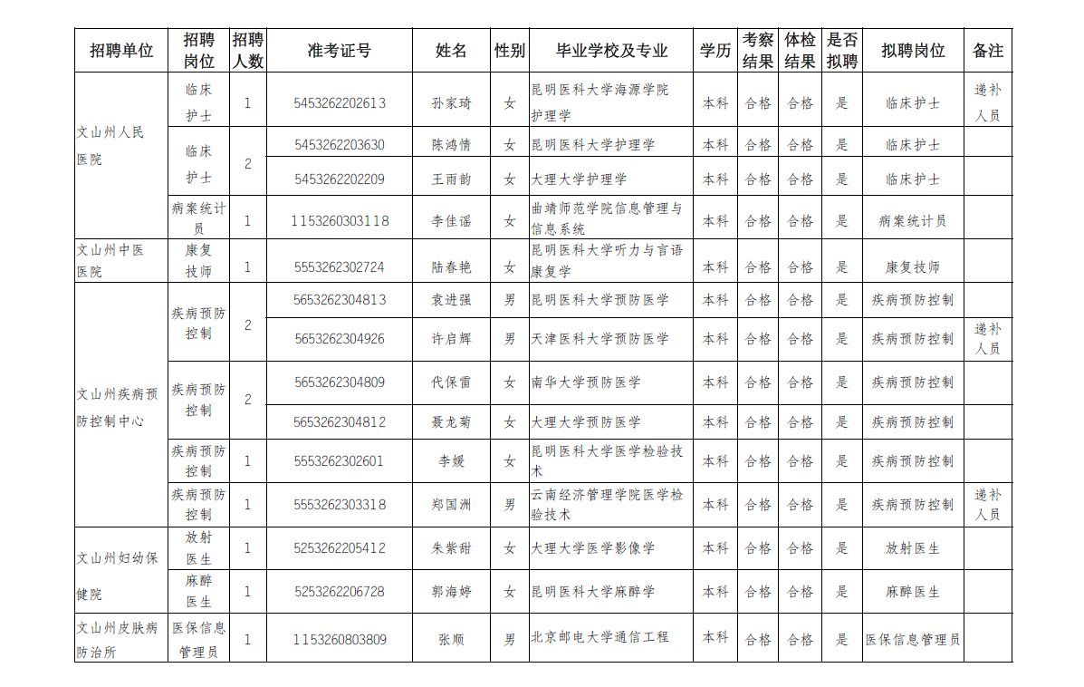 文山州衛(wèi)生健康委員會(huì)2022年直屬事業(yè)單位公開招聘工作人員擬聘公示