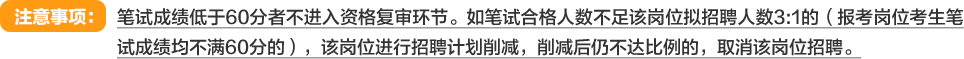 按照筆試成績(jī)從高到低的順序,以每個(gè)崗位進(jìn)入面試人數(shù)與擬招聘人數(shù)的比例為3:1確定進(jìn)入資格復(fù)審人選,若確定進(jìn)入資格復(fù)審的筆試成績(jī)最后一名出現(xiàn)并列的,則并列進(jìn)入資格復(fù)審。若資格復(fù)審出現(xiàn)證件資料與報(bào)名材料不相符的,一律取消面試資格。未在規(guī)定時(shí)間內(nèi)參加資格復(fù)審的視為主動(dòng)放棄。因報(bào)考人員主動(dòng)放棄或資格復(fù)審不合格等原因達(dá)不到面試最低比例的,按筆試成績(jī)從高到低進(jìn)行依次遞補(bǔ)。