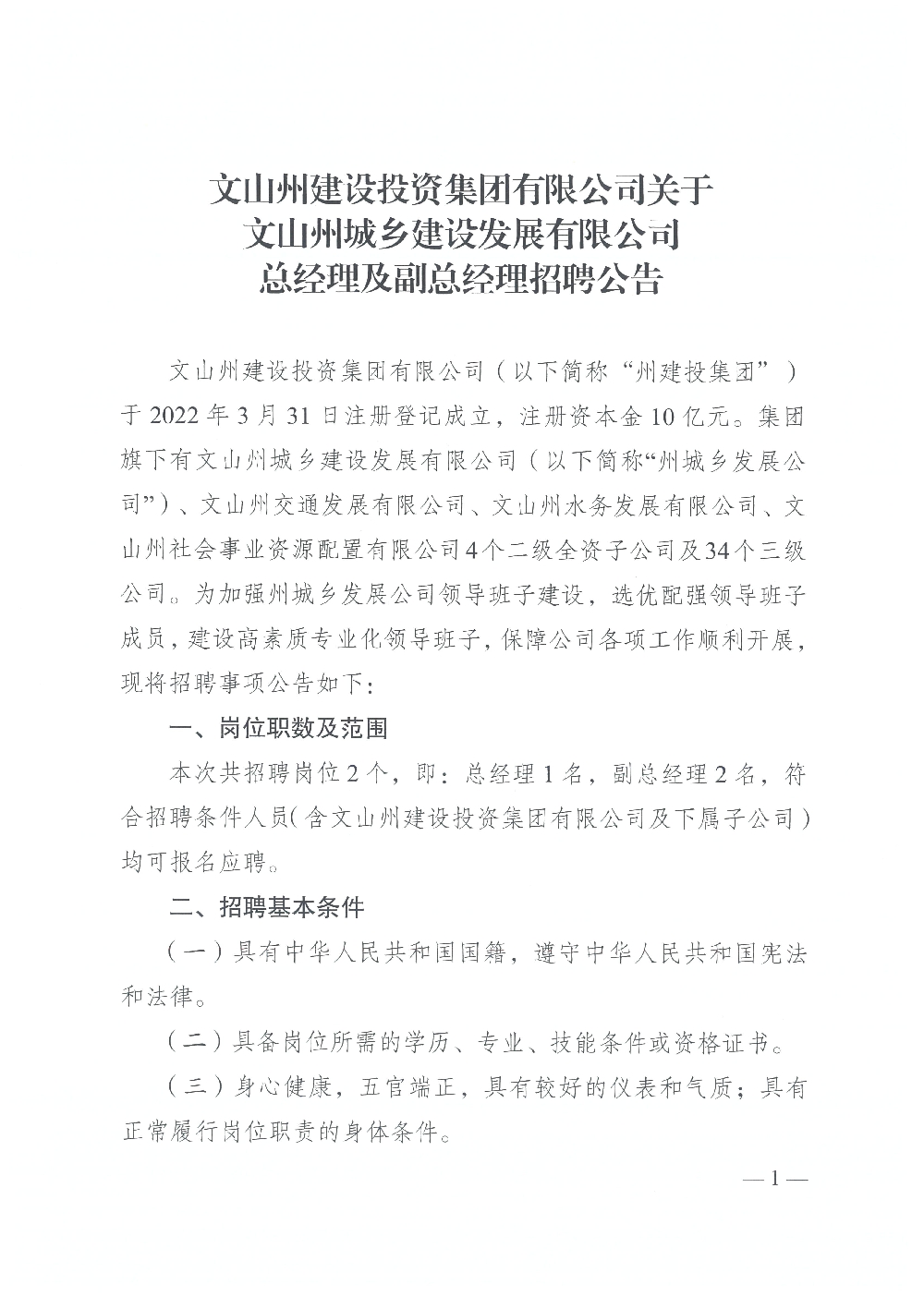 關(guān)于文山州城鄉(xiāng)建設(shè)發(fā)展有限公司總經(jīng)理及副總經(jīng)理招聘公告