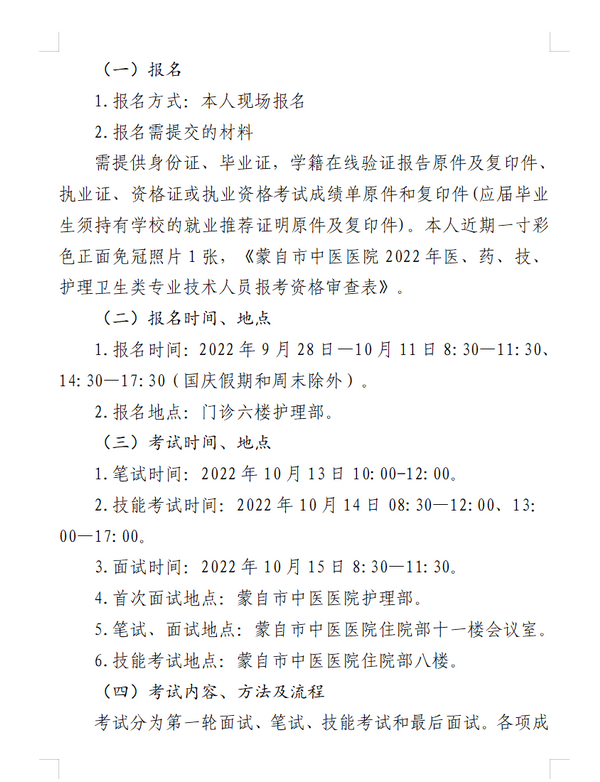 蒙自市中醫(yī)醫(yī)院2022年下半年專業(yè)技術(shù)人員招聘公告.doc