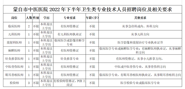 蒙自市中醫(yī)醫(yī)院2022年下半年專業(yè)技術(shù)人員招聘公告