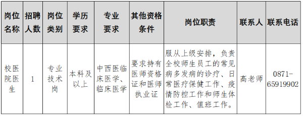 2.福利:聘用人員學校按國家和云南省相關政策購買“五險一金”。