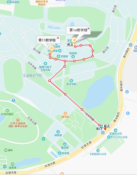 附件1:玉溪師范學院考點2022年下半年全國計算機技術(shù)與軟件專業(yè)技術(shù)資格(水平)考試考生進??荚嚰半x校路線圖