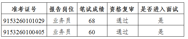 根據(jù)筆試成績(jī)從高到低的順序,且最低合格分?jǐn)?shù)線為60分,按照選調(diào)計(jì)劃和進(jìn)入?yún)⒓用嬖嚾藬?shù)進(jìn)行資格復(fù)審,確定為參加面試人員如下: