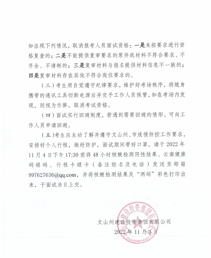 2022年文山州城鄉(xiāng)建設(shè)發(fā)展有限公司招聘面試通知