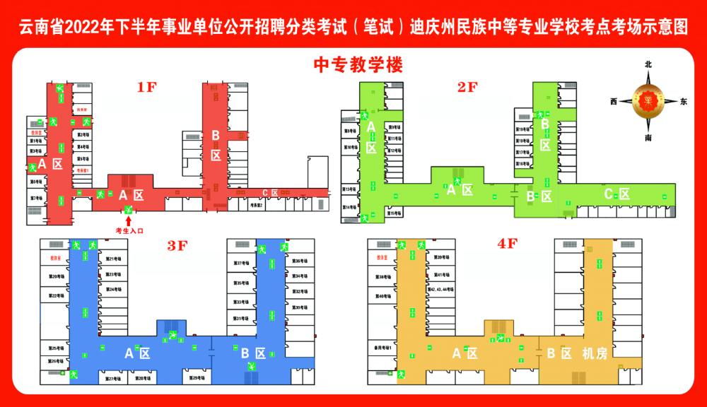 附:《云南省2022年下半年事業(yè)單位公開招聘分類考試(筆試)迪慶州民族中等專業(yè)學??键c考場示意圖》、《考場分布示意圖》。