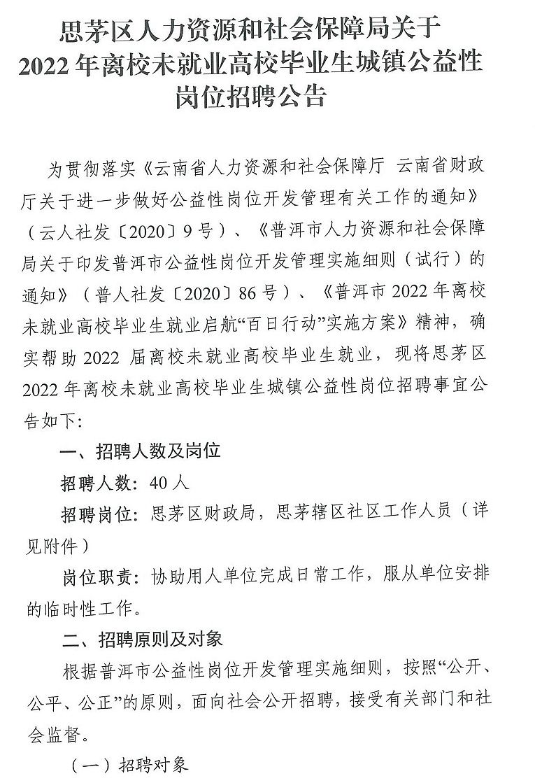 關(guān)于2022年離校未就業(yè)高校畢業(yè)生城鎮(zhèn)公益性崗位招聘公告