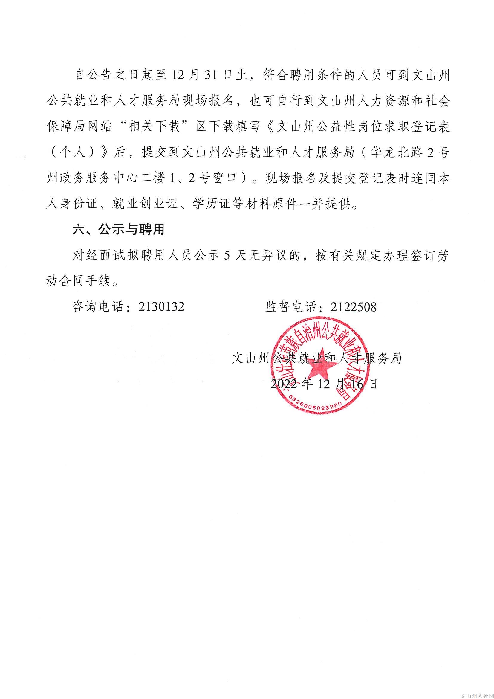 文山州婦聯(lián)公開招聘公益性崗位工作人員公告(2022年第10期)