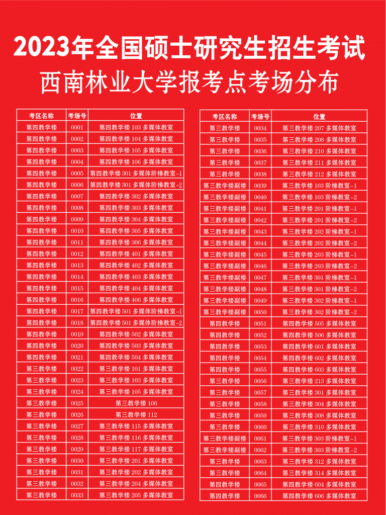 2023年全國(guó)碩士研究生招生考試將于12月24日—26日進(jìn)行,請(qǐng)參加考試的各位考生堅(jiān)守“誠(chéng)信守法光榮、違規(guī)舞弊可恥”的理念,嚴(yán)格遵守考試紀(jì)律,知法、守法,誠(chéng)信考試,拒絕作弊。為確??荚嚻椒€(wěn)順利進(jìn)行,西南林業(yè)大學(xué)考點(diǎn)就考生疫情防控、入場(chǎng)等事宜公告如下。