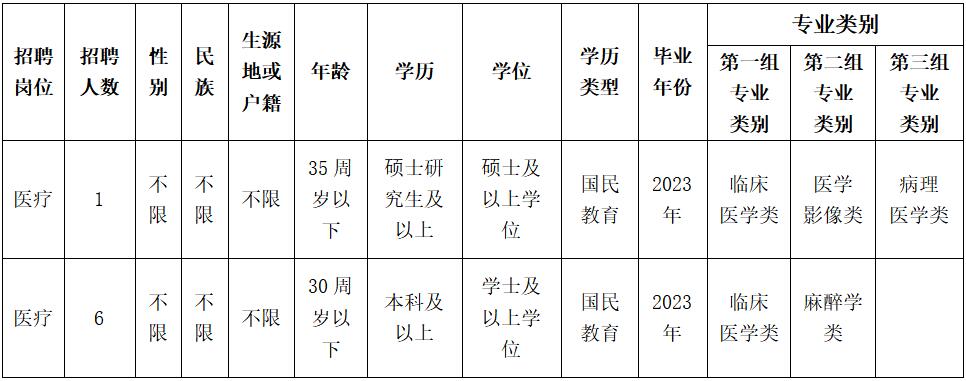 高等院校醫(yī)學(xué)類(lèi)本科及以上學(xué)歷畢業(yè)后直接參加國(guó)家計(jì)劃內(nèi)住院醫(yī)師規(guī)范化培訓(xùn),2023年國(guó)家住院醫(yī)師規(guī)范化培訓(xùn)合格且具有國(guó)家執(zhí)業(yè)醫(yī)師資格,參加醫(yī)療衛(wèi)生行業(yè)招聘醫(yī)學(xué)類(lèi)崗位的,視為2023年度應(yīng)屆畢業(yè)生(資格復(fù)審時(shí)須提供成績(jī)單、合格證明,否則取消聘用資格)。