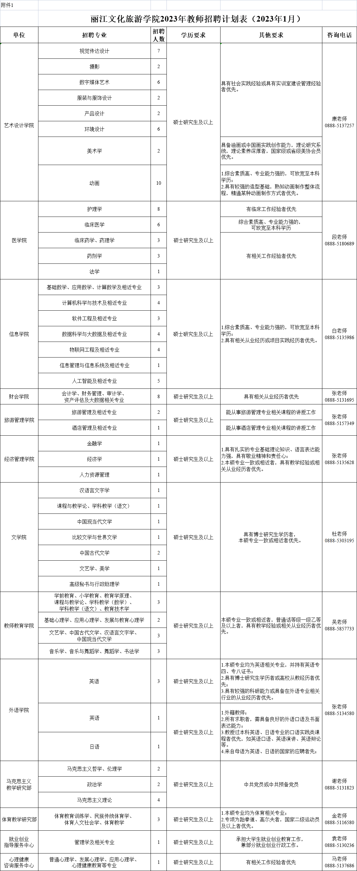 附件1.麗江文化旅游學(xué)院2023年教師招聘計(jì)劃表(2023年1月)