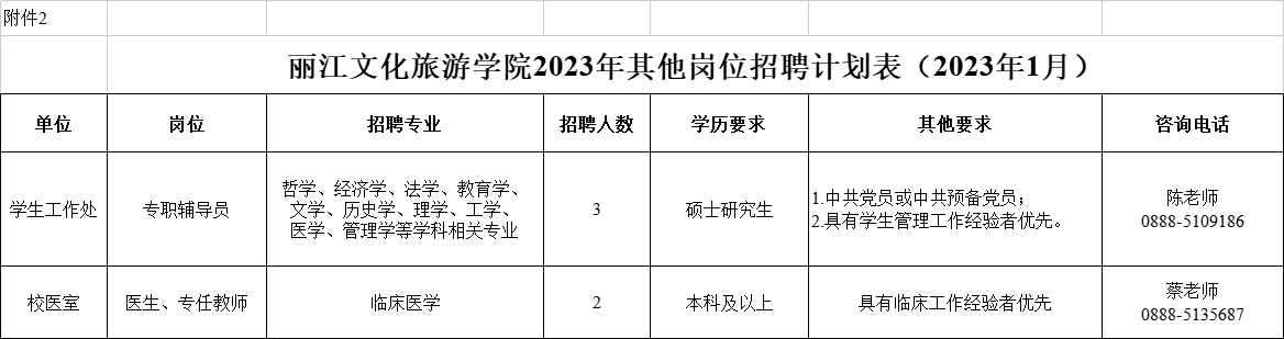 附件2.麗江文化旅游學(xué)院2023年其他崗位招聘計(jì)劃表(2023年1月)