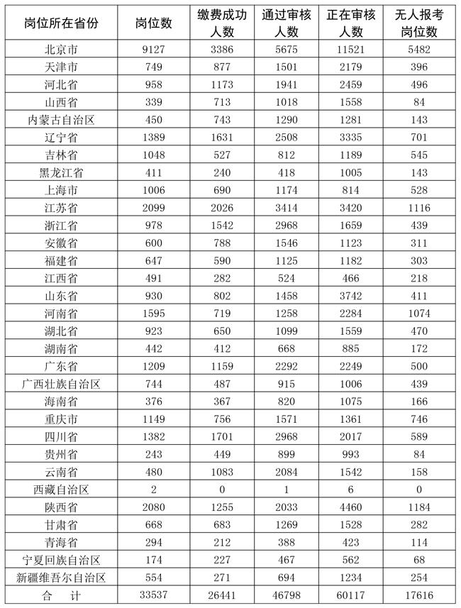 1.截至1月14日17時各省份崗位報考情況統(tǒng)計表