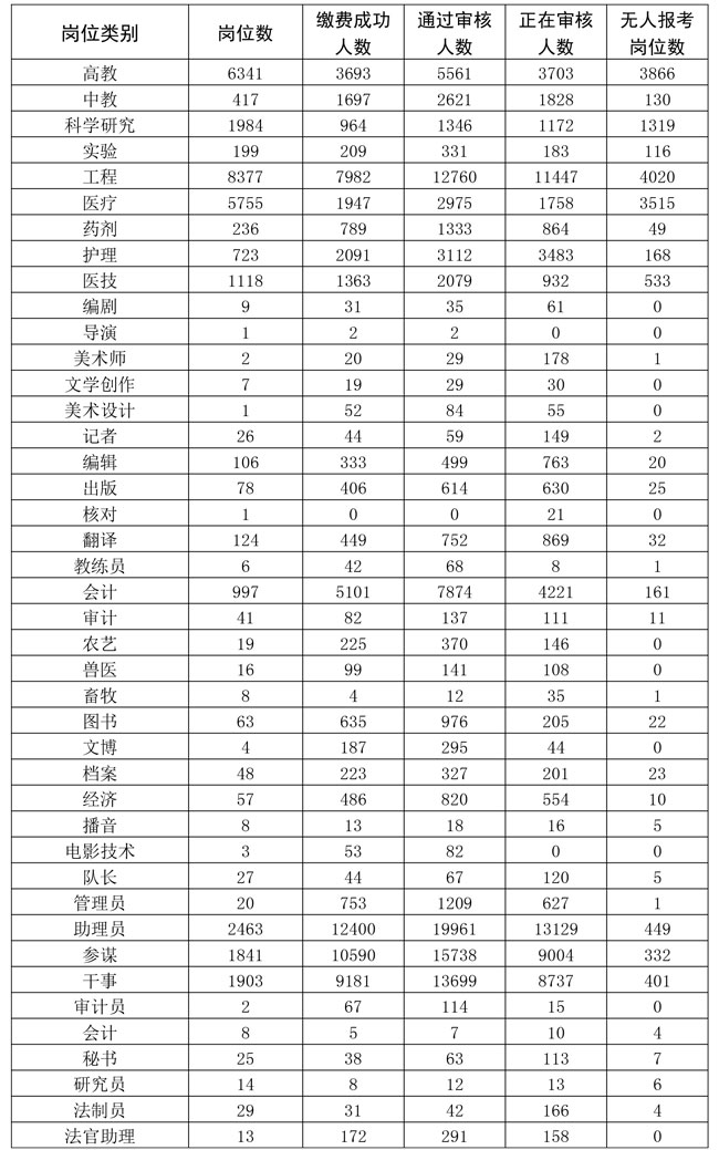 2.截至1月15日17時(shí)各崗位類別報(bào)考情況統(tǒng)計(jì)表