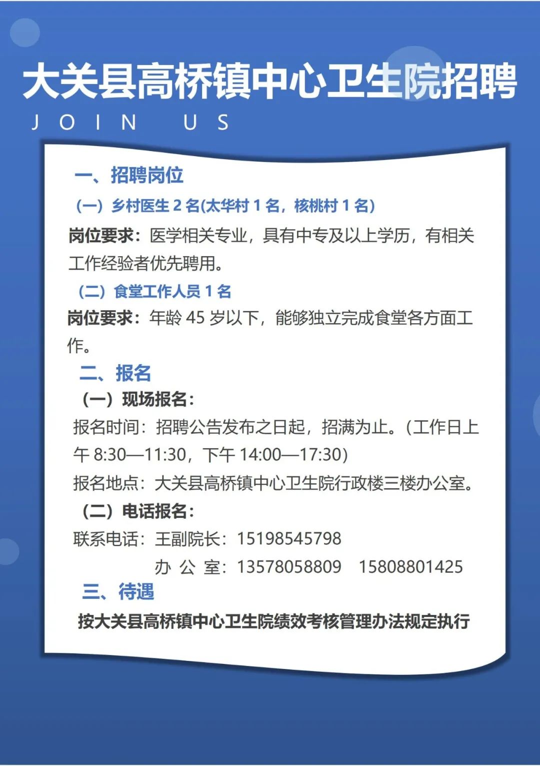 2023年昭通市大關(guān)縣高橋鎮(zhèn)中心衛(wèi)生院招聘簡(jiǎn)章