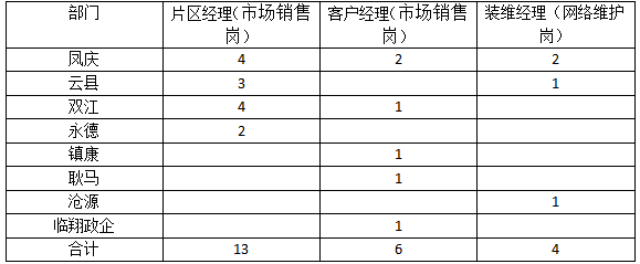 市場銷售崗位19人,網(wǎng)絡(luò)維護人員4人(年齡20-45歲,應(yīng)屆畢業(yè)生優(yōu)先、有經(jīng)驗者優(yōu)先)