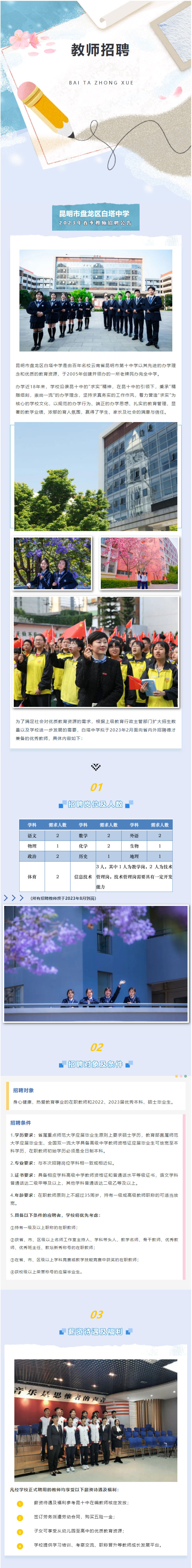 昆明市盤龍區(qū)白塔中學(xué)2023年春季教師招聘公告