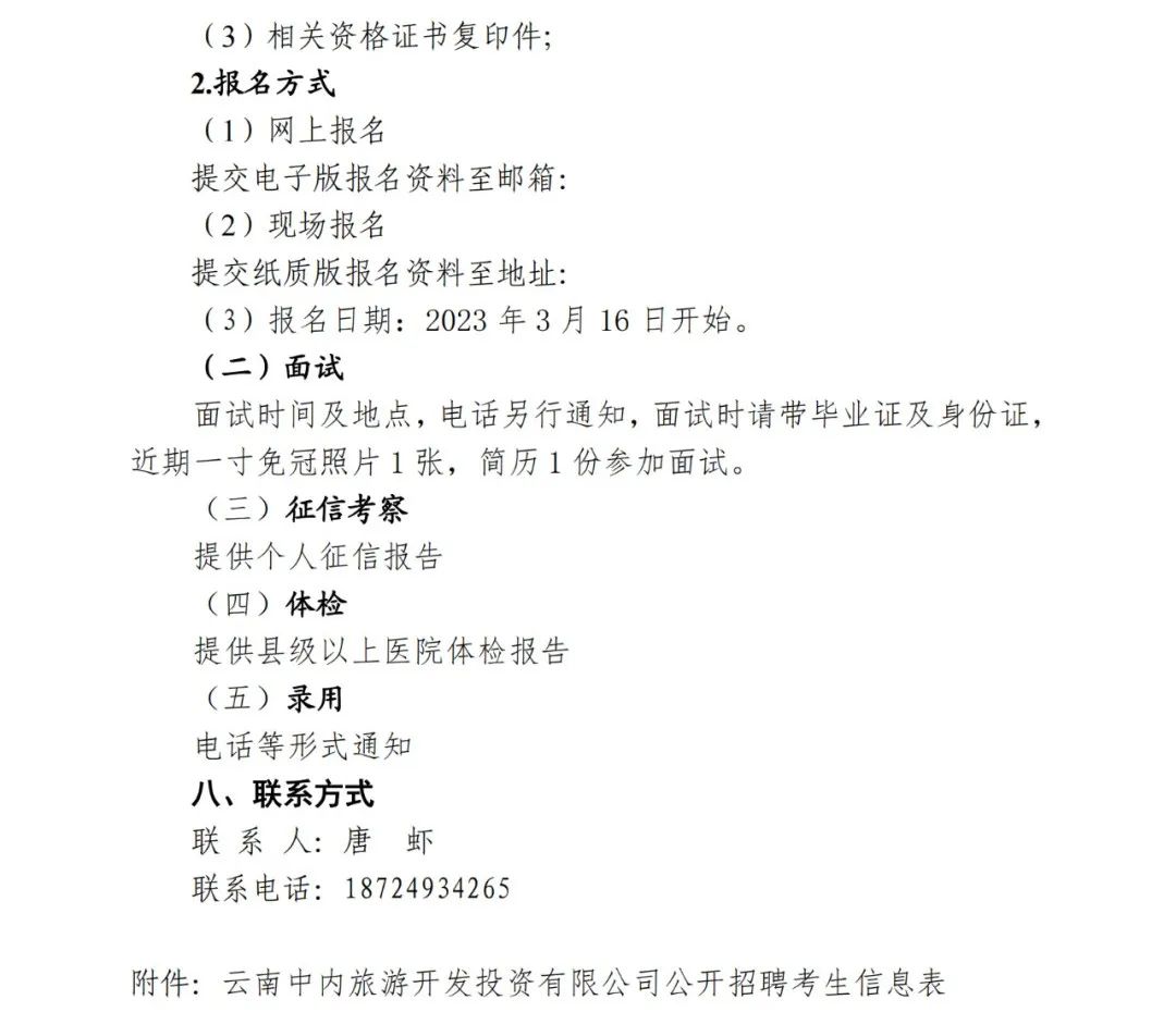 2023年云南中內(nèi)旅游開發(fā)投資有限公司招聘公告