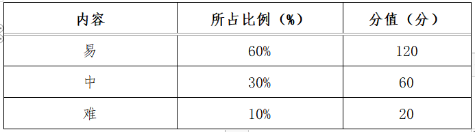 完全客觀化試題,以在線方式作答。題型為單項(xiàng)選擇題,100題,每題2分,滿分200分。