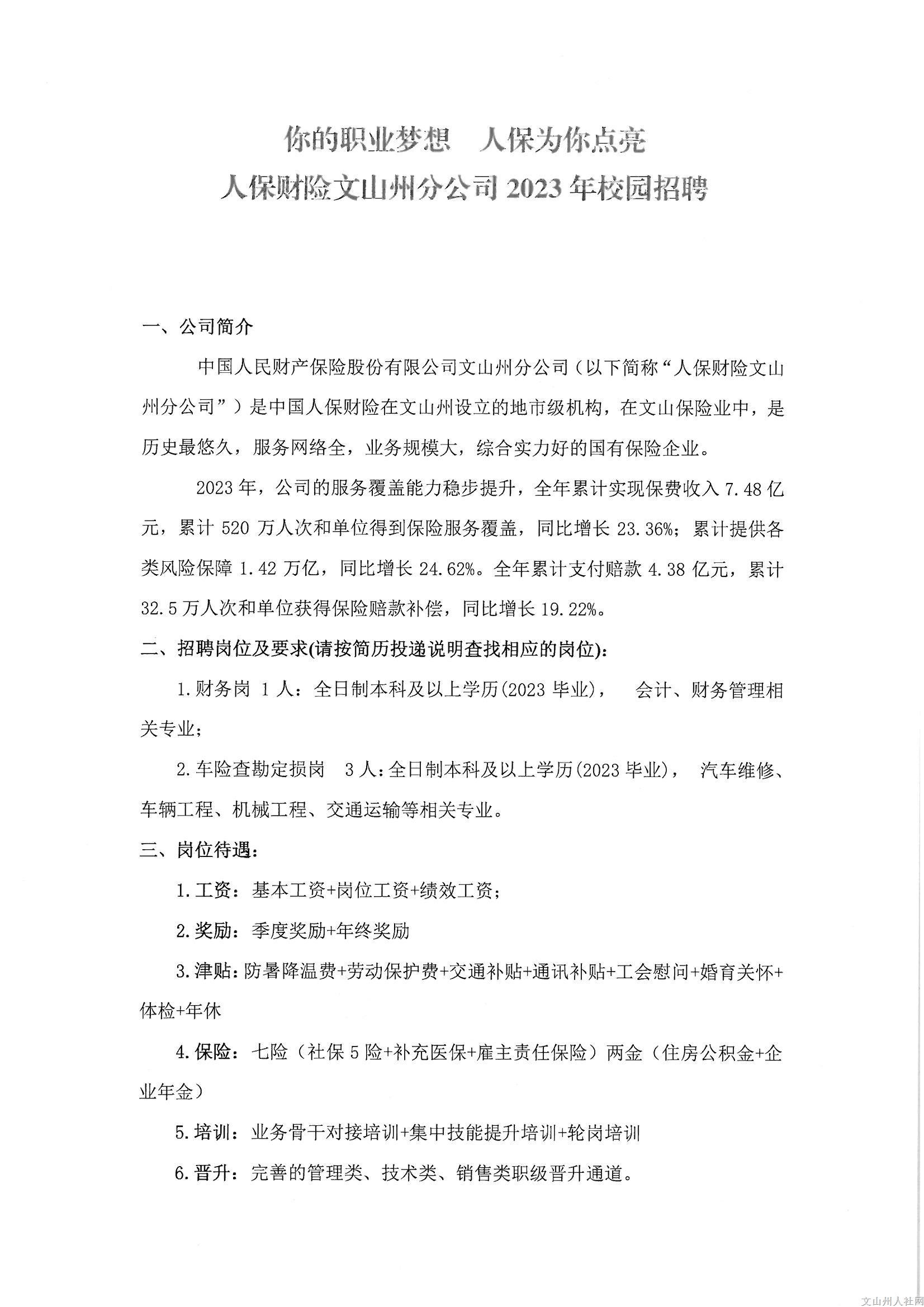 2023年人保財險文山州分公司校園招聘