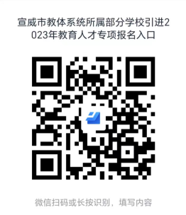 (2)網(wǎng)絡(luò)報(bào)名須通過(guò)微信二維碼上傳的材料:報(bào)名所需證件(證明),未就(過(guò))業(yè)保證書(shū)、宣威市教育體育系統(tǒng)所屬部分學(xué)校引進(jìn)2023年教育人才專項(xiàng)報(bào)名表。