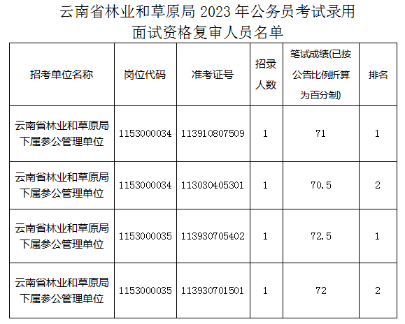 現(xiàn)將云南省林業(yè)和草原局2023年公務(wù)員考試錄用面試資格復(fù)審工作有關(guān)事項公告如下:
