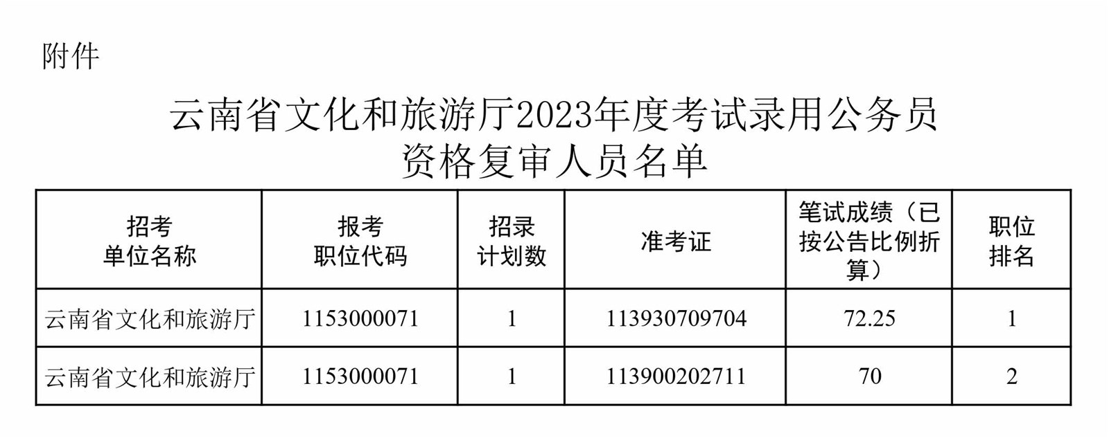 附件:云南省文化和旅游廳2023年度考試錄用公務(wù)員資格復(fù)審人員名單