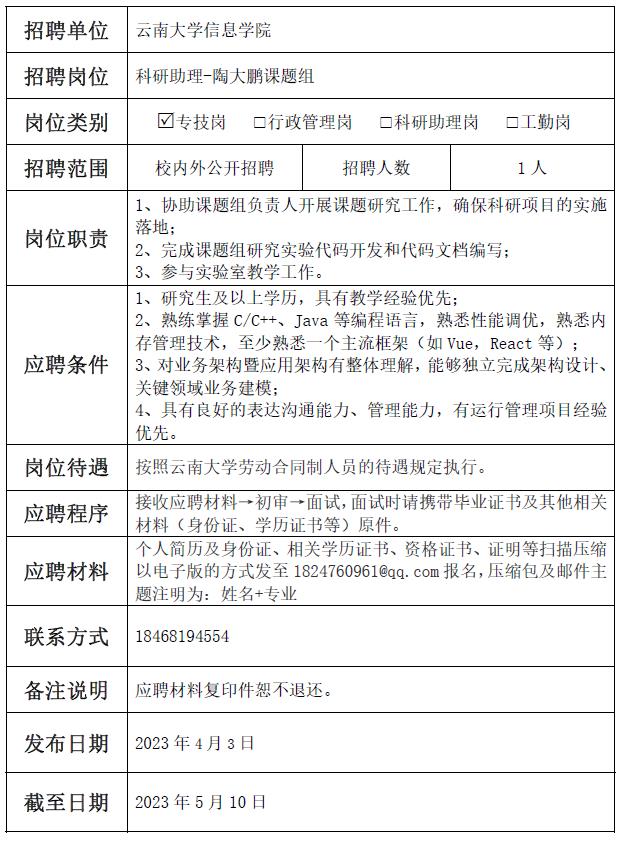 云南大學勞動合同制人員招聘公告
