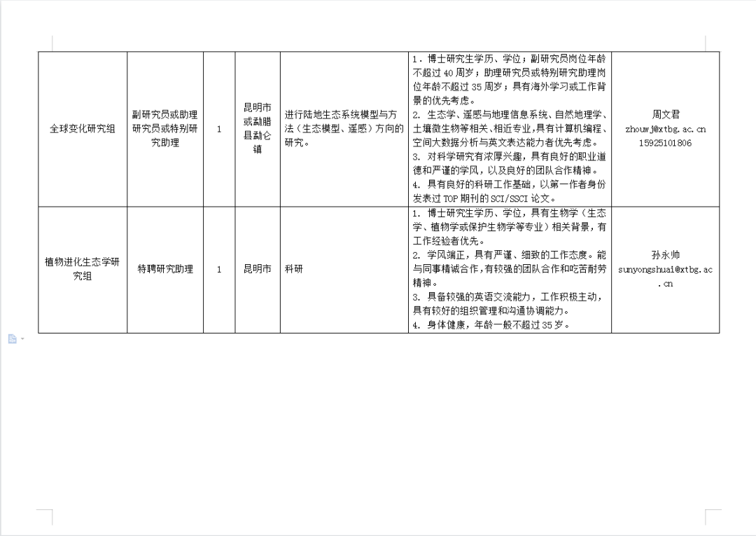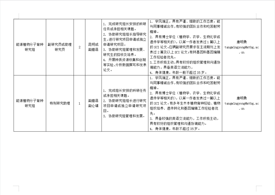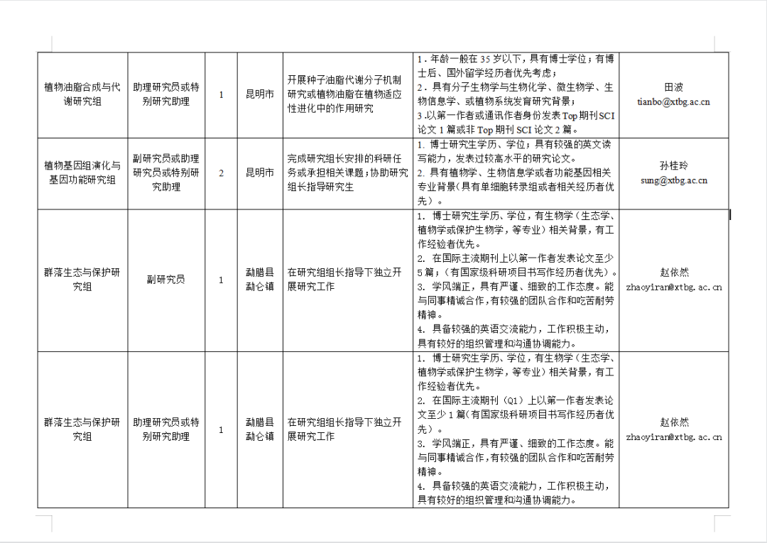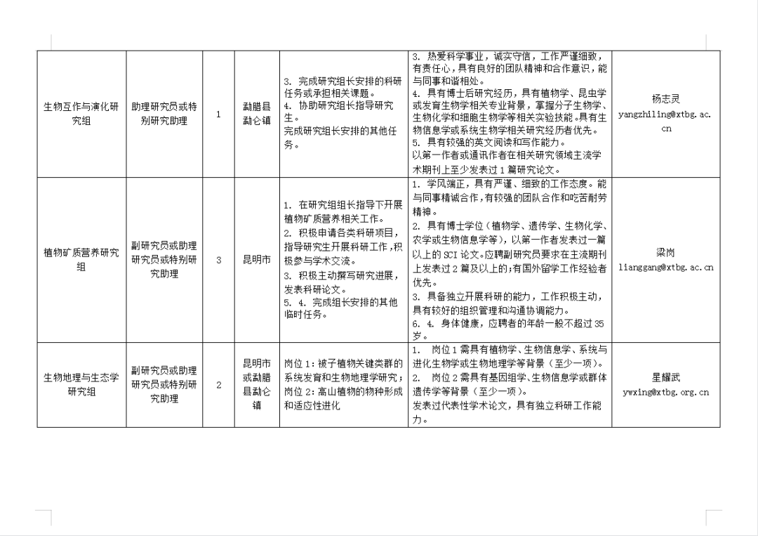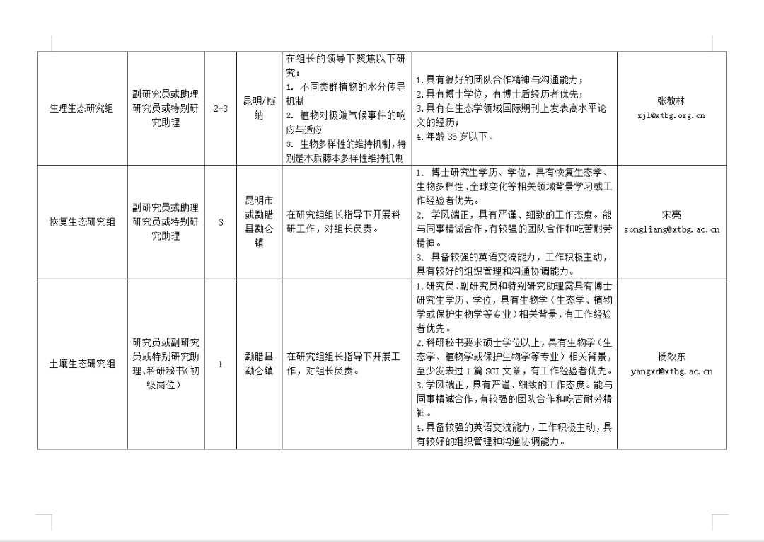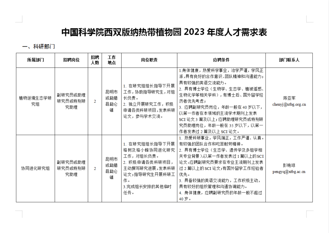(一)招聘崗位和應(yīng)聘條件詳見《中國科學(xué)院西雙版納熱帶植物園2023年度人才需求表》(詳見文末圖表)。