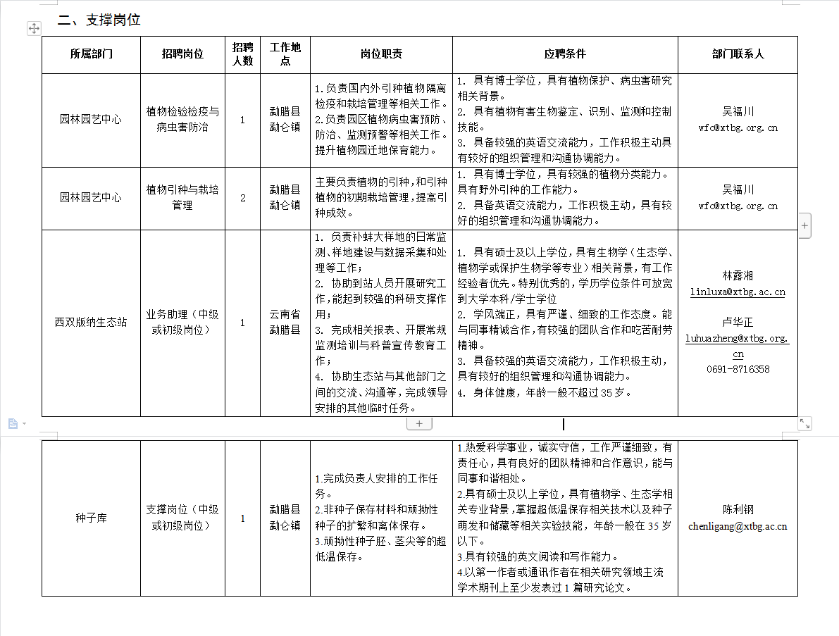 中國科學(xué)院西雙版納熱帶植物園2023年度崗位招聘(9人)公告