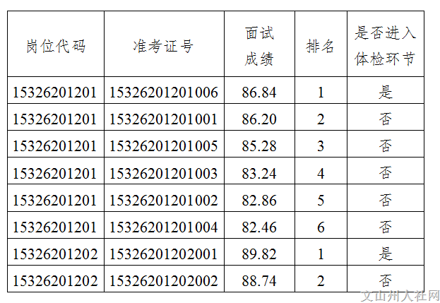 按照《2023年文山州事業(yè)單位緊缺崗位招聘通告》和《文山州交通運輸局下屬事業(yè)單位2023年緊缺人才招聘通告》的有關規(guī)定,文山州交通運輸局下屬事業(yè)單位2023年緊缺人才招聘面試已于2023年4月22日組織開展,現(xiàn)將面試成績及進入體檢環(huán)節(jié)人員名單公告如下。